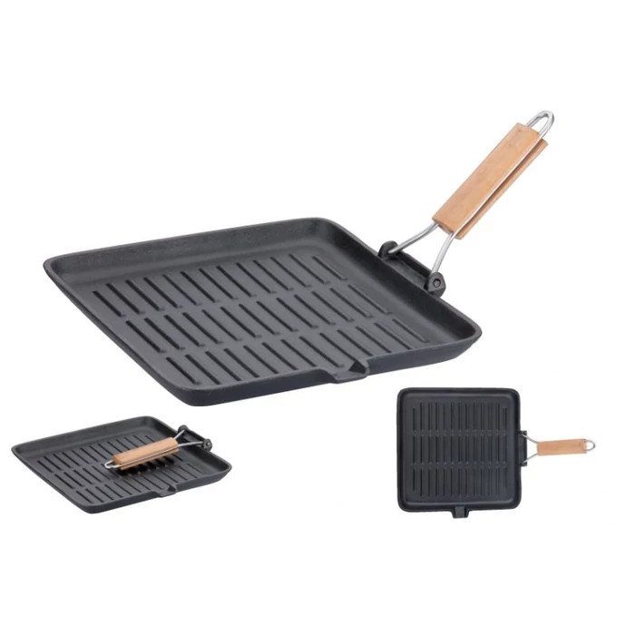 Grill Serpenyő 21,5*21,5cm, öntöttvas, felhajtható nyéllel